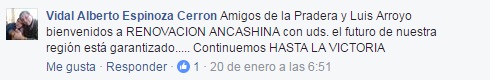 El propio alcalde provincial de Huaraz alienta de manera activa estos acontecimientos mediante las redes sociales con su cuenta personal del Facebook.