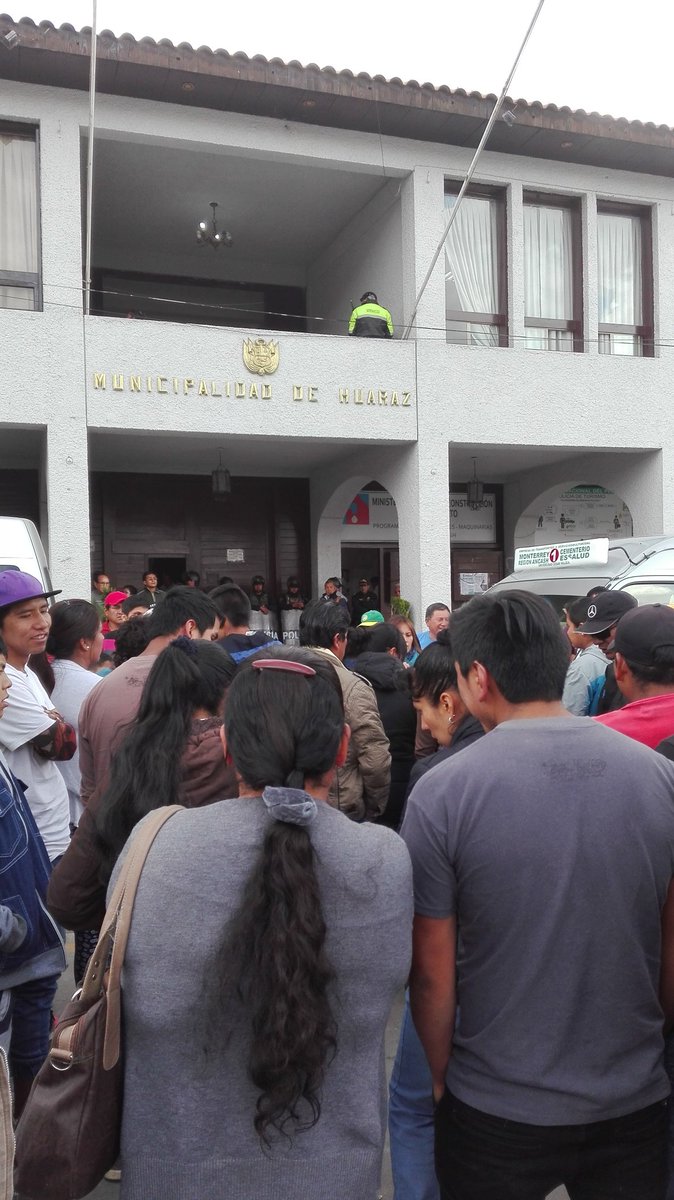 Protesta de conductores de la Línea 1 ayer en el frontis de la municipalidad de Huaraz. Foto: Estéban Lázaro.