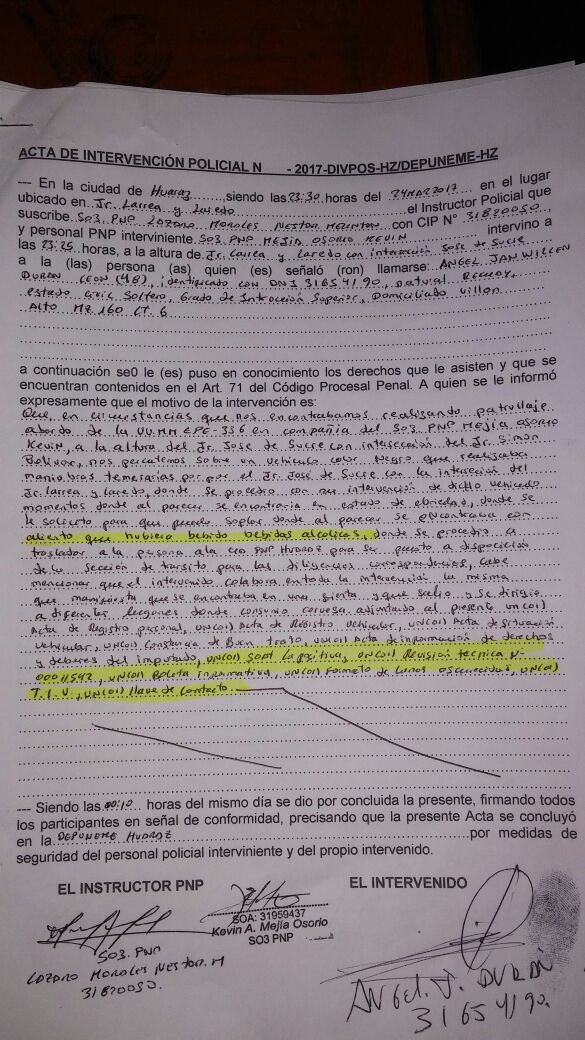 Acta de Intervención Policial. Foto: Ancash Noticias