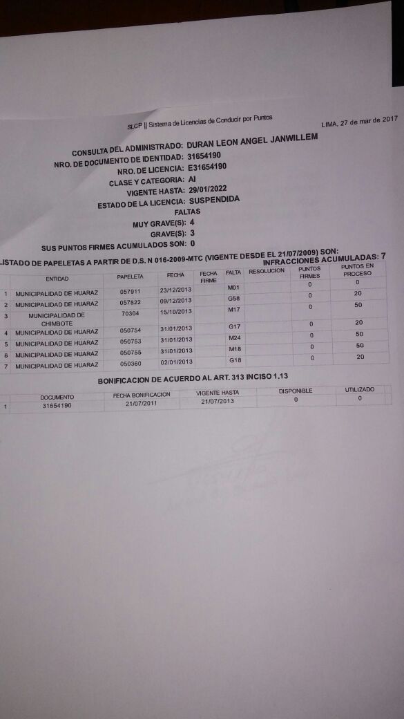 Los efectivos policiales realizaron la intervención al conductor en la intersección de los jirones Sucre y Larrea y Laredo. Para sorpresa de las autoridades policiales, el conductor del referido vehículo fue el consejero huaracino Ángel Durán León quien tenía la licencia de conducir suspendida por encontrarse inmerso anteriormente en un accidente de tránsito y donde un menor de edad salió herido.