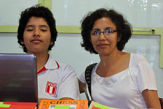 Violeta Alcántara Cerna y su hijo, el campeón mundial, José.