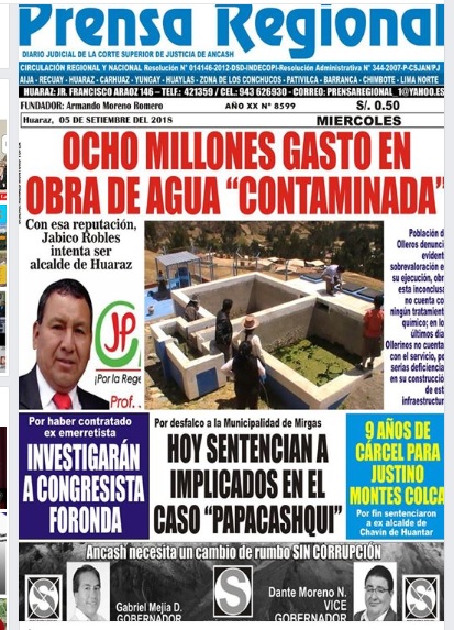 Tabloide que en su edición del 05 de setiembre aseguraba sentencia por presunto desfalco. Campaña mediática de demolición que duró 40 días.