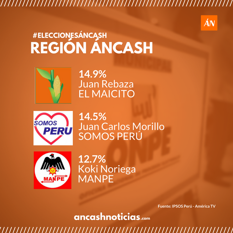 El candidato por el movimiento independiente regional El Maicito, Juan Rebaza Carpio y el candidato de Somos Perú, Juan Carlos Morillo Ulloa, disputarán la gobernación regional de Ancash en los comicios de segunda vuelta que se realizarán el próximo 9 de diciembre.