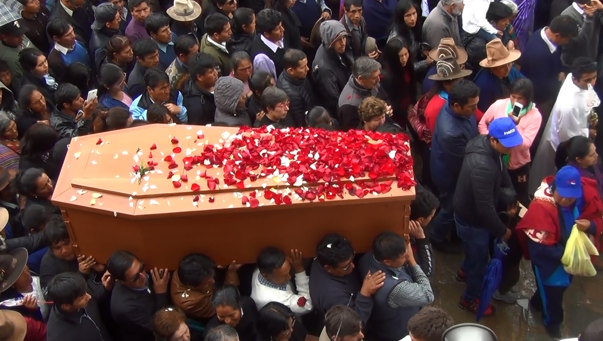 Luego de la misa su ataúd fue paseado por todo el perímetro de la plaza de armas chacasina, por los pobladores de la zona de los Conchucos procedentes de diferentes comunidades, en medio de cánticos y profundo dolor, alcanzando el momento más emotivo cuando ingresó el féretro a la iglesia donde muchas mujeres irrumpieron a llorar.