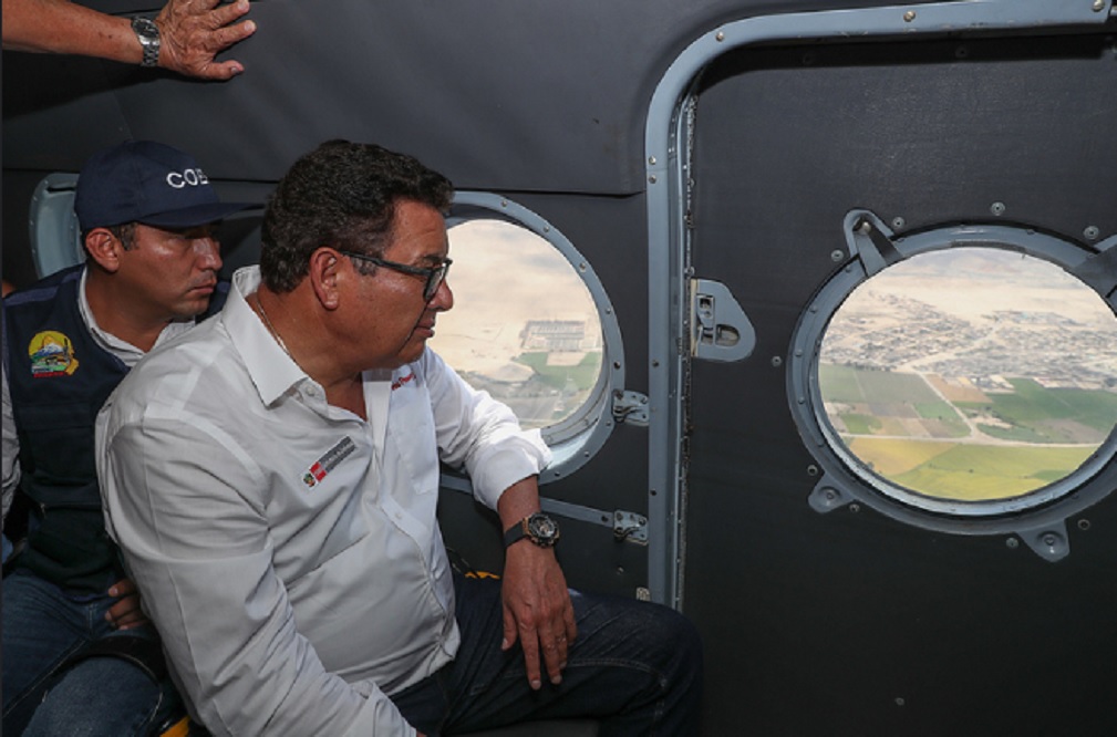Posteriormente, el ministro de Defensa realizó un sobrevuelo por las desembocaduras de los ríos Casma, Huarmey y Santa, a fin de evaluar las zonas vulnerables y de riesgo ante las lluvias intensas que se presentan en varias partes del país.