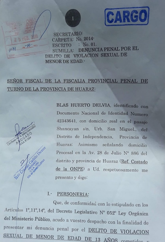 Los padres de la menor denunciaron también que cuando fueron a asentar su queja ante la Comisaría de Huaraz no les prestaron atención por lo que tuvieron que dirigirse a interponer la denuncia ante el Ministerio Público que ya investiga los hechos.