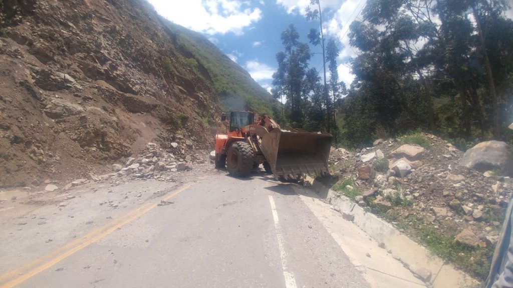Ante el desprendimiento de rocas y tierras, comuna provincial de Huari asignó maquinaria pesada. Tránsito debe normalizarse en las próximas horas.