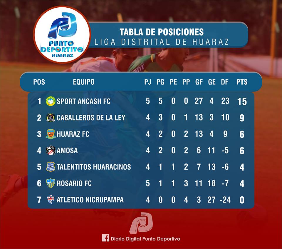 Este domingo se jugará la sexta fecha de la Liga Distrital de Fútbol de Huaraz. Sport Ancash tendrá como rival al Deportivo Amosa.
