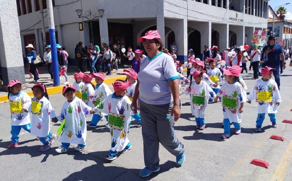 Las autoridades municipales y representantes de las instituciones públicas y privadas, que trabajan en la protección al niño, mujer y a familia, participaron de un vistoso pasacalle por las principales avenidas de la ciudad, desde el local central de la Universidad Nacional “Santiago Antúnez de Mayolo” (Unasam) hasta la plaza de armas de Huaraz.