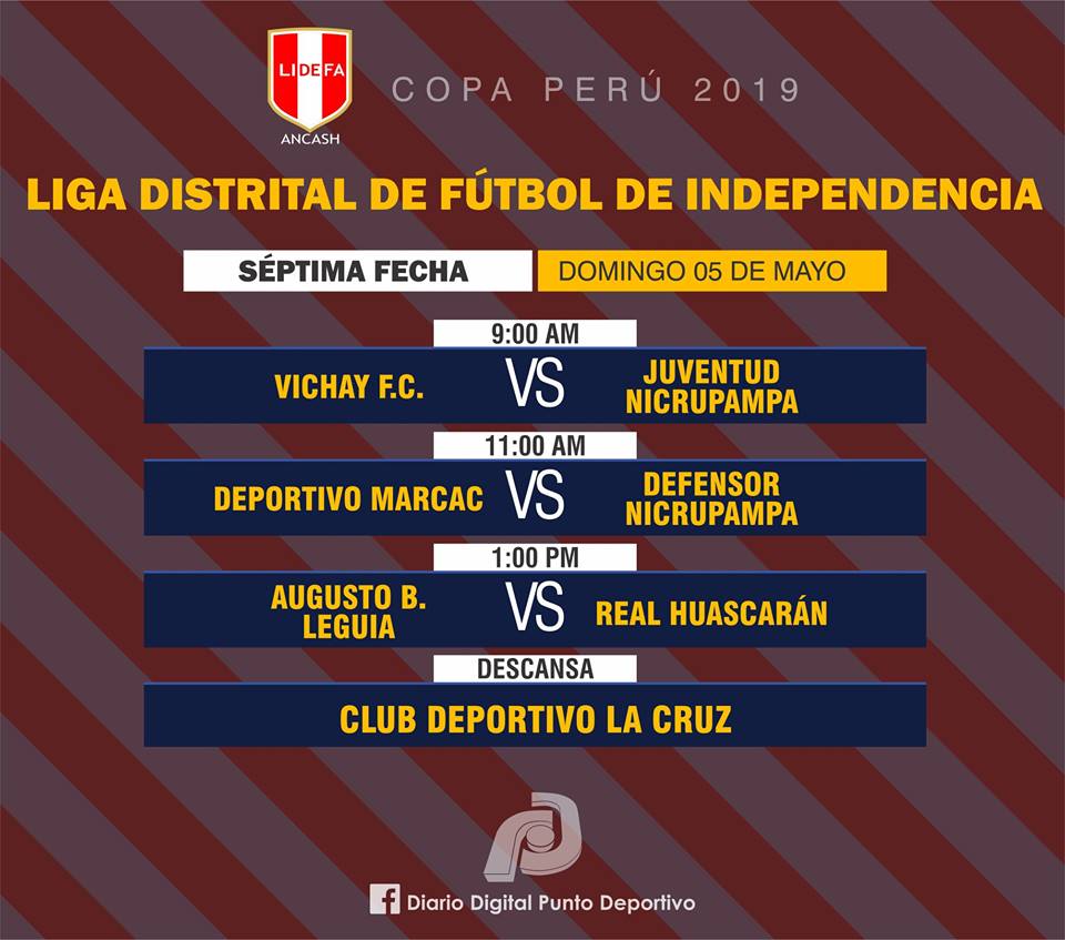 Serán tres los partidos que se jugarán el domingo, entre los que destacan el Deportivo Marcac vs Defensor Nicrupampa y Augusto B’ Leguía vs. Real Huascarán, en el que se puede definir el título de la Liga Distrital de Fútbol de Independencia en caso los milagrinos ganen su partido serán campeones del torneo.