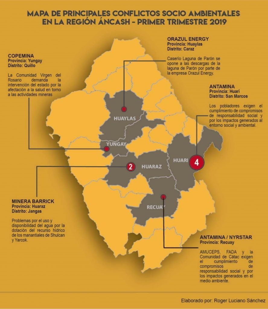 Mapa de conflictos mineros de Áncash primer trimestre 2019
