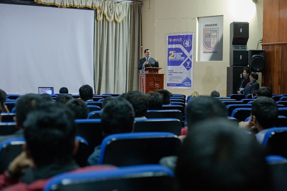 Durante el acto inaugural el Dr. Poterico resaltó la importancia de los egresados en los estamentos universitarios, a su vez, instó a los mismos a perseverar en el camino laboral y dejar el nombre de la Unasam en alto.