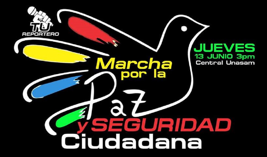 Este jueves 13 de junio a partir de las 3 de la tarde se realizará en Huaraz la Gran Marcha por la Paz y la Seguridad Ciudadana, con la finalidad de exigir a las autoridades municipales, del Ministerio Público, de la Policía Nacional y el Poder Judicial un mayor compromiso para luchar frontalmente contra el incremento de la delincuencia.