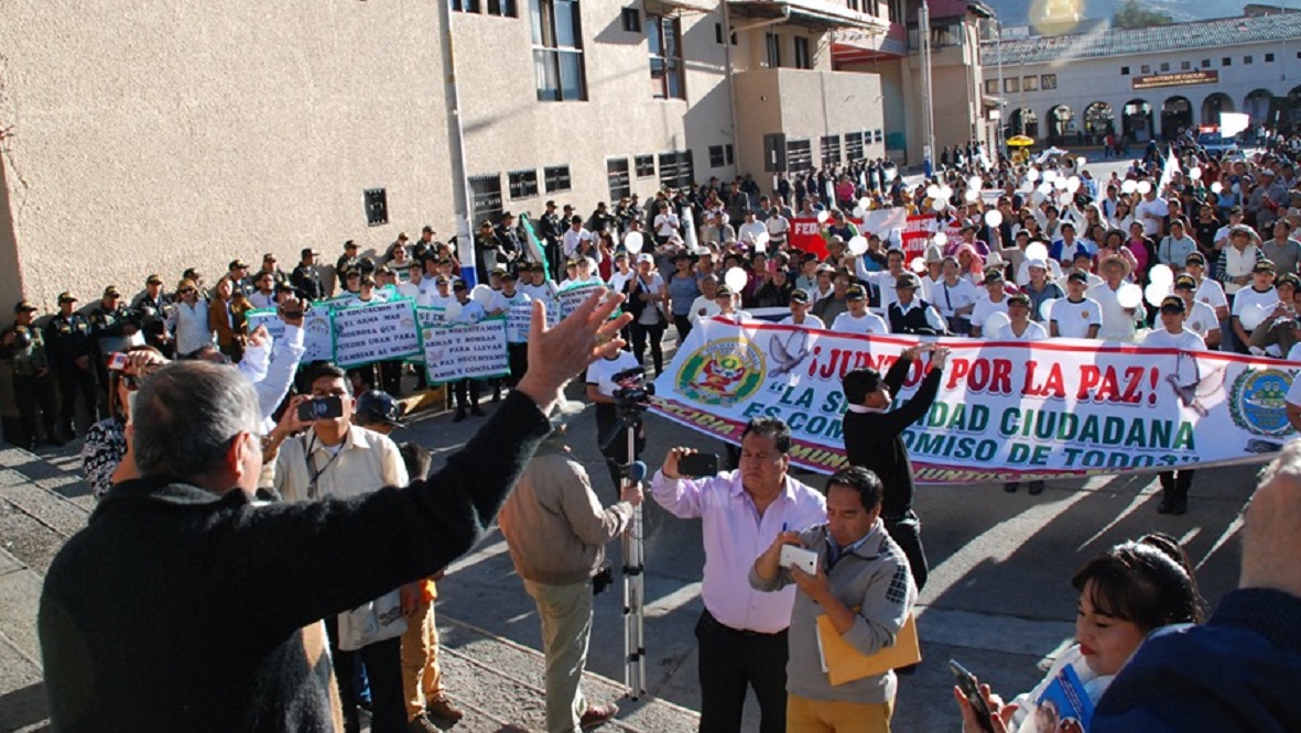 Fue una marcha pacífica, organizada y muy espontánea que cumplió su cometido: sensibilizar a todos sobre la importancia de luchar contra la delincuencia y la violencia. La movilización convocada por las Juntas Vecinales de Huaraz se vio sumada con el concurso del obispo de Huaraz Eduardo Velásquez Tarazona, del consejero por Huaraz Zugner Regalado, del gerente de la Municipalidad de Huaraz Héctor Cabezas.