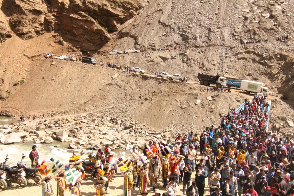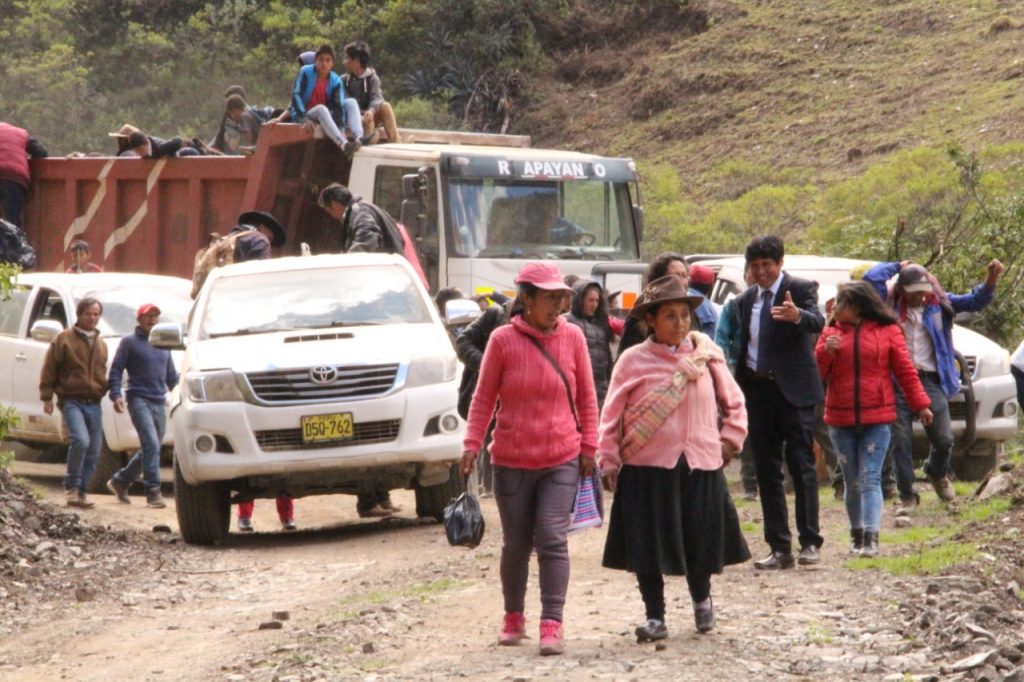 Pobladores y autoridades cruzando la frontera Ancash-Huánuco