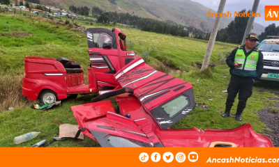 Recuay: mototaxi rojo queda destrozado tras accidente en la vía Cátac–Conococha