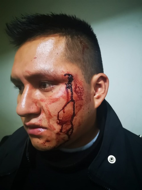Efectivos de la comisaría de Huaraz, tras recibir comunicación de una gresca al interior de un local social donde se realizaba una fiesta patronal, se trasladaron a las inmediaciones de la av. Confraternidad Internacional Este con Jr. Augusto B. Leguía, al llegar al lugar procedieron a tranquilizar la pelea, mientras realizaban ese intento fueron atacados de manera descomunal con botellas de vidrio por los protagonistas de la gresca, viéndose doblegado sus esfuerzos solicitaron apoyo a sus colegas.
