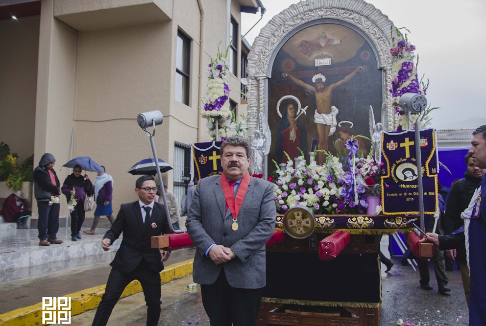 El Poder Judicial encabezado por su presidente Dwight Guillermo García Lizárraga rindió homenaje al «Señor de los Milagros», durante su paso procesional por el frontis del Palacio de Justicia de Áncash.