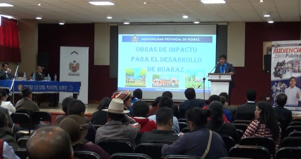 El alcalde provincial de Huaraz, en audiencia pública de rendición de cuentas, afirmó que las obras de envergadura en la capital departamental comenzarán a ejecutarse a partir del próximo año, luego de haber superado diversas deficiencias dejadas por la gestión anterior.