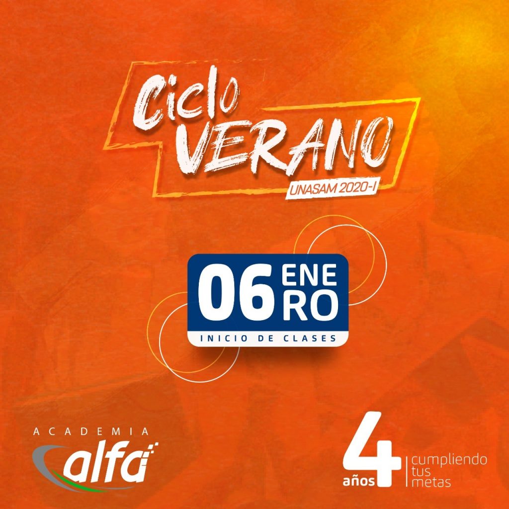 El Ciclo Verano Unasam 2020- I en la Academia Alfa inicia el próximo lunes 06 de enero de 2020.