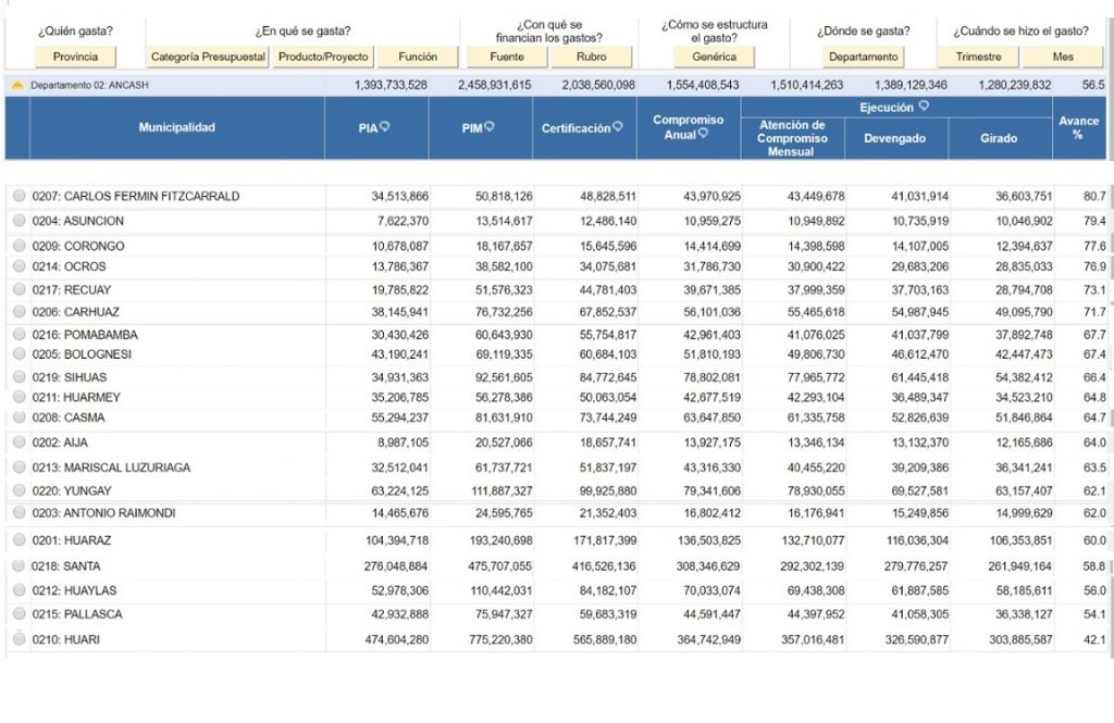 Le siguen de cerca las provincias de Asunción con 79.4%. Corongo con 77.6% y Ocros con 76.9%.