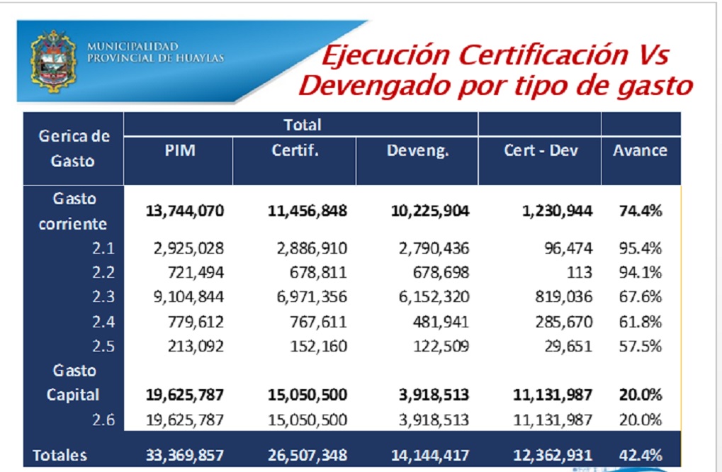 Informó también sobre ejecución presupuestal 2019 justificando de que las emergencia por lluvias no permitió el adecuado cumplimiento de metas, pero que los fondos no gastados ya están comprometidos y no serán revertidos.