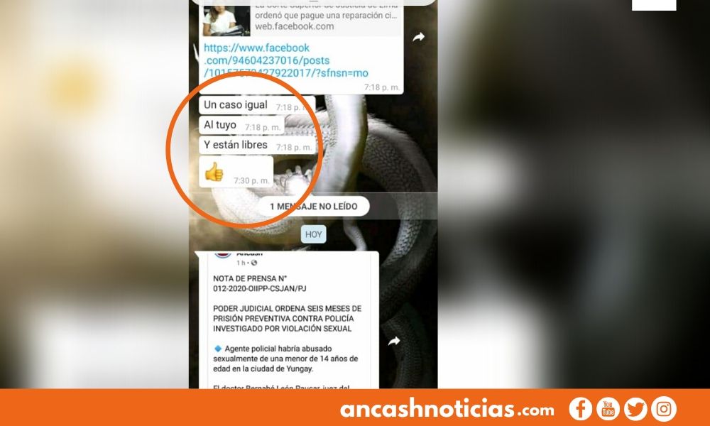 Privat Beltrán agregó que lejos de continuar con las investigaciones que corresponden, la fiscal Velasquez le envía mensajes a su celular personal con pantallazos sobre agresiones a policías en otras regiones y sobre el caso del policía para el que dictaron prisión preventiva por la presunta comisión del delito de abuso sexual.