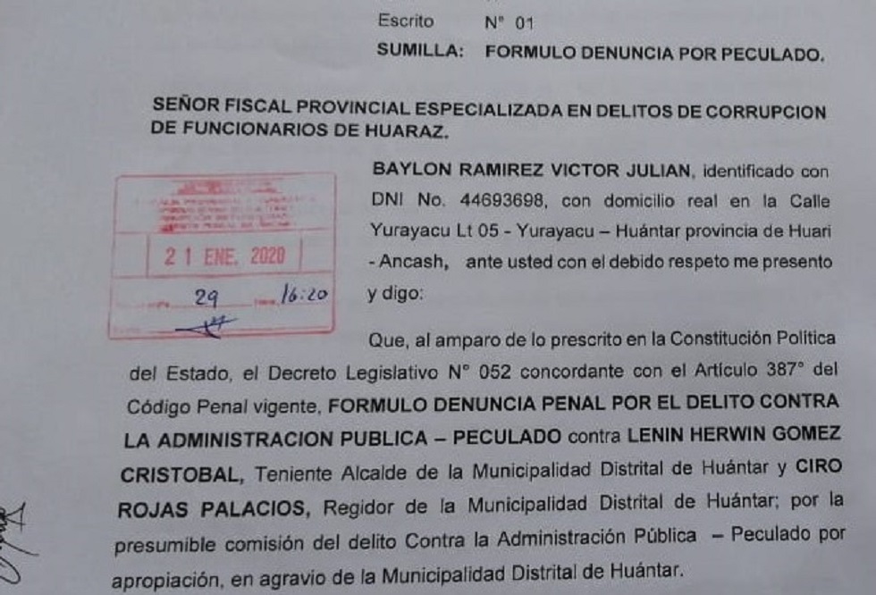Se trata de Lenin Herwin Gómez y Ciro Rojas Palacios, quienes aprovechándose de su condición de regidores se apoderaron ilegalmente de los caudales municipales para un presunto viaje de representación a la ciudad de Iquitos (Loreto), para cuyo efecto apelaron solo al uso de las declaraciones juradas.