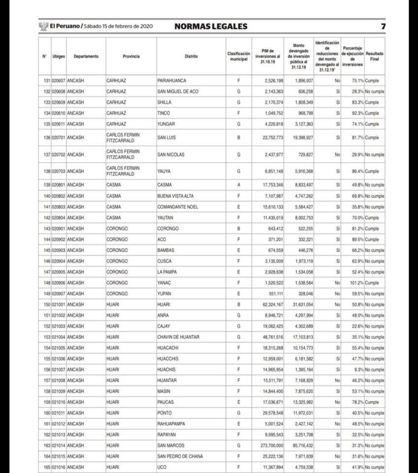 Ante este resultado positivo el burgomaestre Paucasino, se mostró muy optimista en seguir ejecutando proyectos y obras que mejoren la calidad de vida del ciudadano, motivo por la cual se viene cumpliendo las metas asignadas por el Ministerio de Economía y Finanzas.