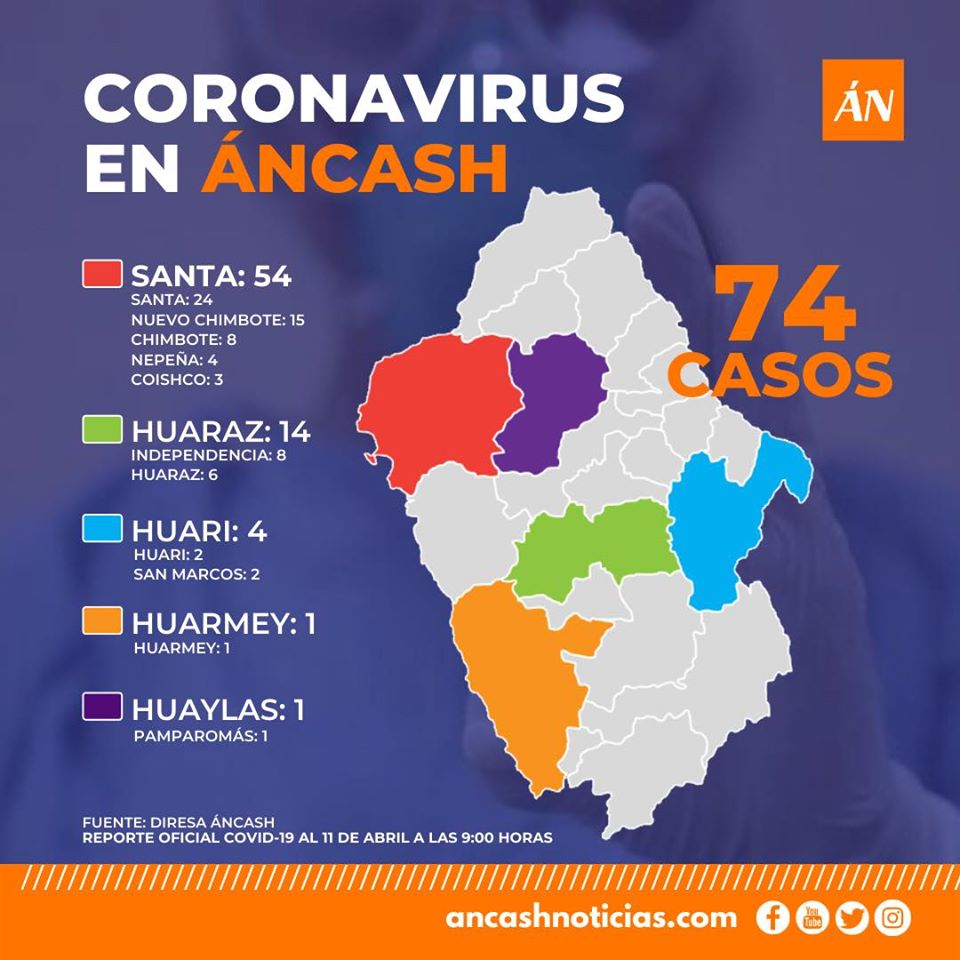 Provincia del Santa suma hasta ahora 54 casos, Huaraz 14, Huari 4, Huarmey 1 y Huaylas 1.