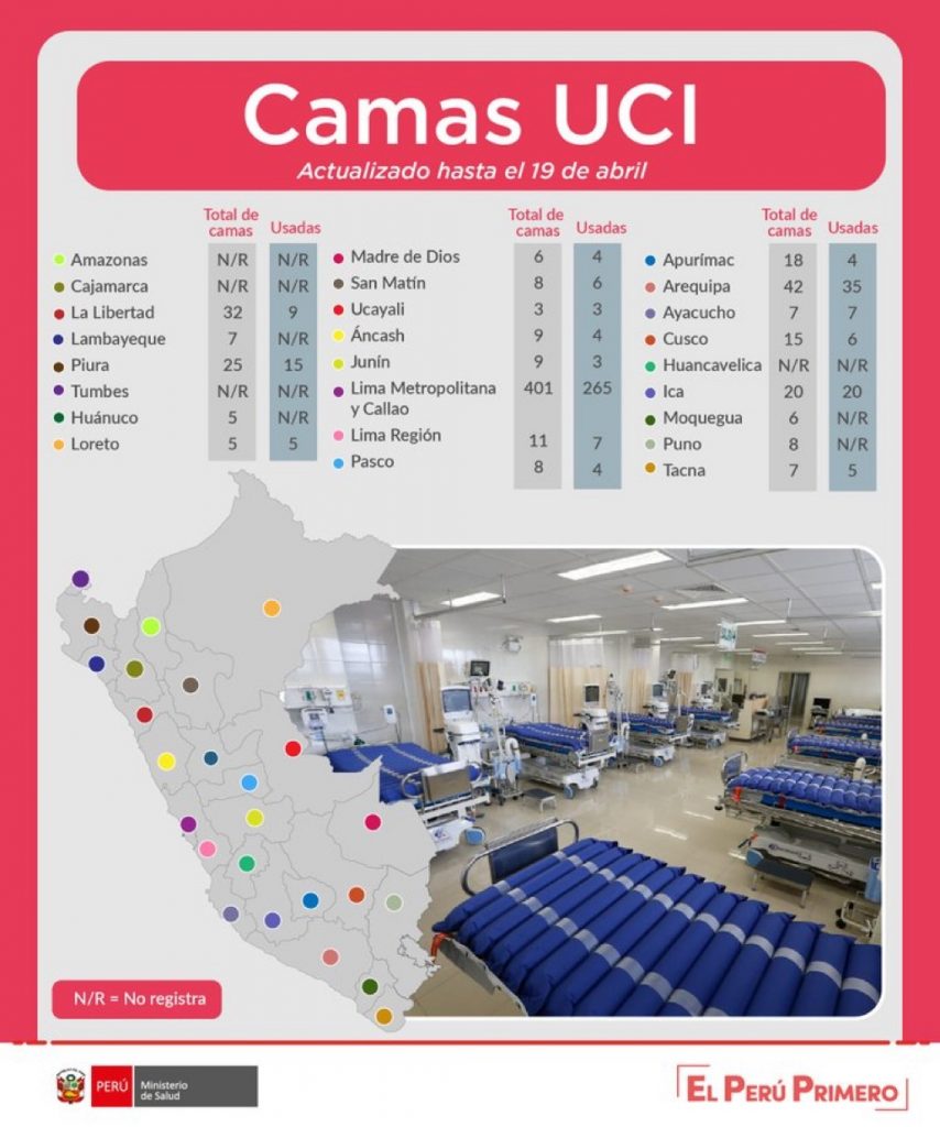 Perú cuenta con 525 camas UCI para pacientes COVID-19