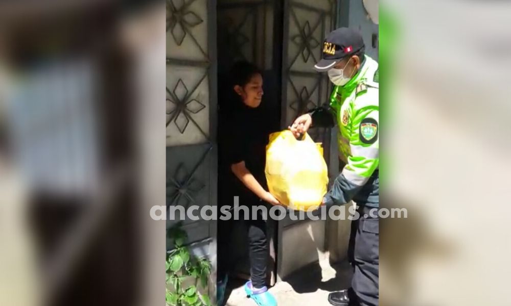 Áncash: familias vulnerables vienen recibiendo apoyo con víveres por la policía de Huaraz durante la cuarentena