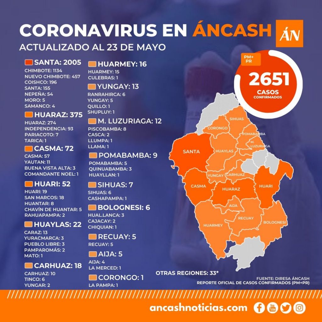 Coronavirus en Áncash: Primeros casos en Casca y La Merced eleva a 2651 contagios