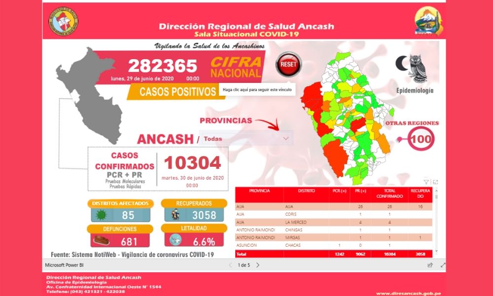 Coronavirus Áncash HOY 30 junio: 10304 casos confirmados de COVID-19 y sala situacional DIRESA Áncash
