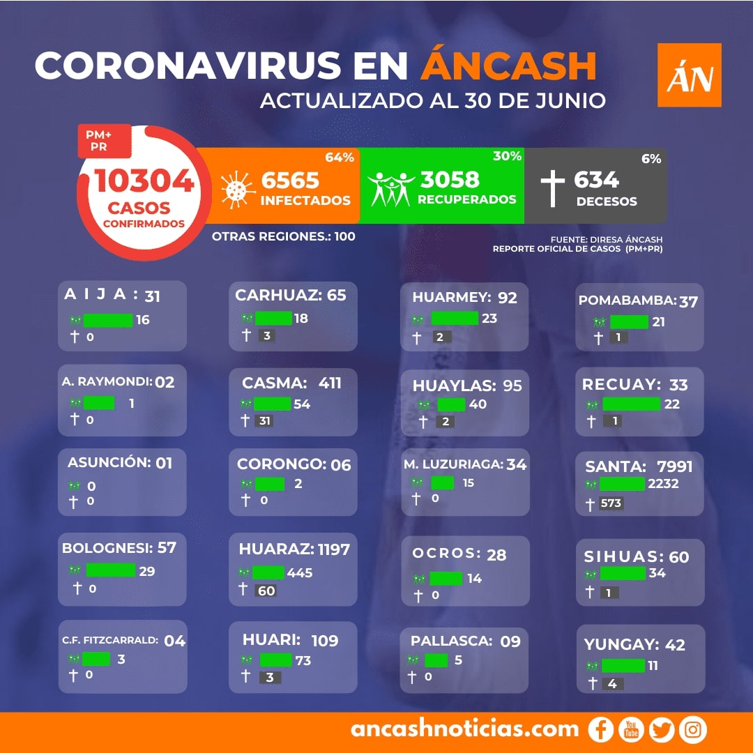 | LEE MÁS: Coronavirus Áncash HOY 30 junio: 10304 casos confirmados de COVID-19 y sala situacional DIRESA Áncash