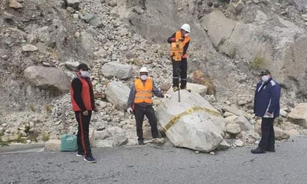 Personal especializado, viene realizando la destrucción de las grandes rocas; que, en algunos casos alcanzaban los dos metros de altura y que obstruían la vía; además, se hizo la limpieza de las cunetas.