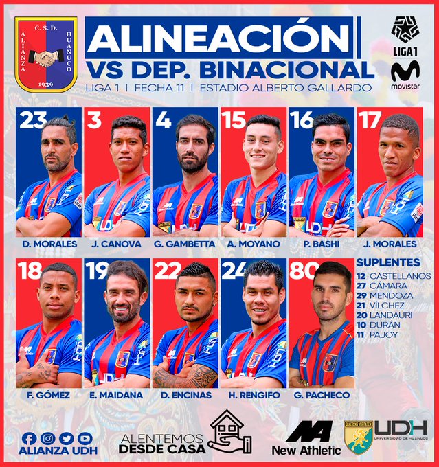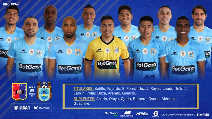 Deportivo Binacional (2): Sotillo, Leudo, Fernández, Fajardo, Reyes, Tello, Labrín, Polar, Arango, Deza, Gularte.