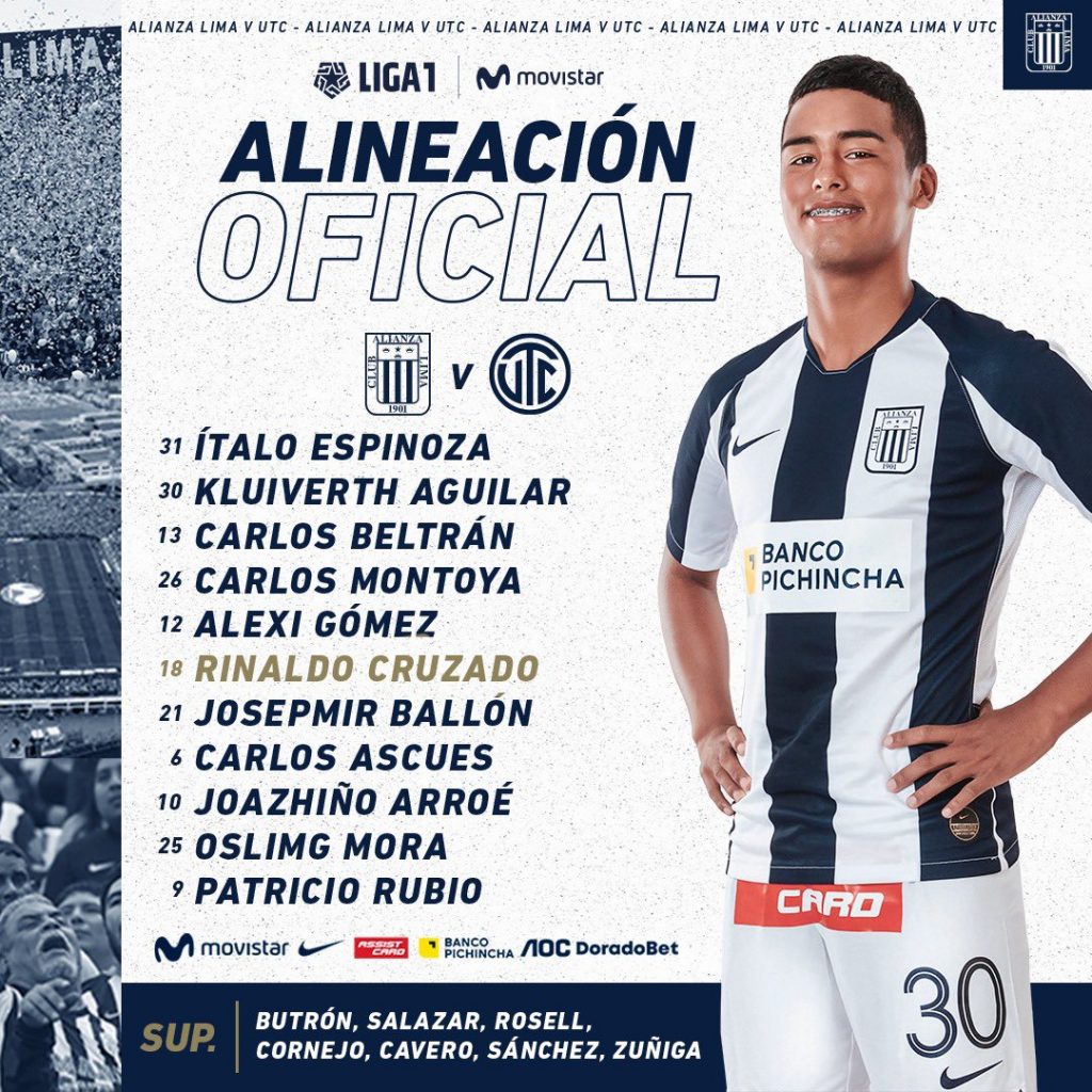 Alianza Lima (0): Ítalo Espinoza; Kluiverth Aguilar, Aldair Salazar, Carlos Beltrán, Alexi Gómez; Josepmir Ballón, Rinaldo Cruzado, Carlos Ascues, Oslimg Mora, Joazhiño Arroé, Patricio Rubio.