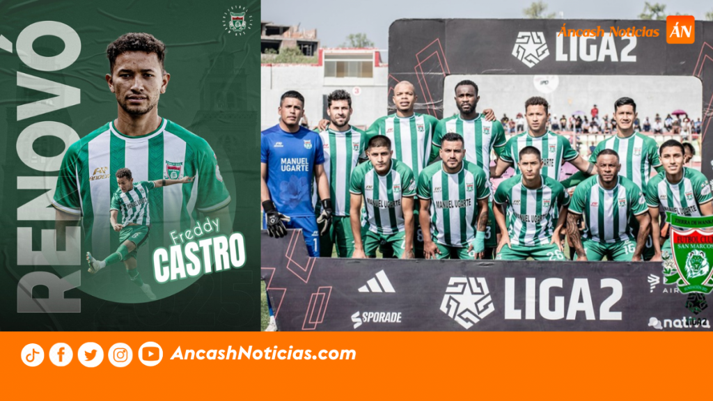 ¡Oficial! El volante chimbotano, Freddy “CAMELLO” Castro, se ha convertido en el primer jugador en extender su vínculo con el Fútbol Club San Marcos de cara a la temporada 2025 de la Liga 2. La renovación de Castro representa una gran noticia para la afición y el cuerpo técnico, quienes han valorado su desempeño en el campo y su compromiso con el equipo.