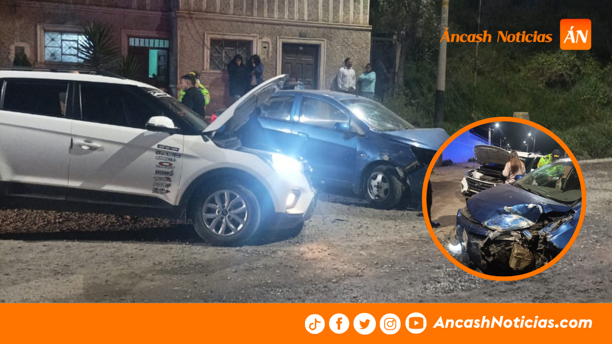 Dos autos colisionaron violentamente en la vía del centro poblado de Toclla, en Huaraz. El conductor de uno de los vehículos fue trasladado de emergencia al hospital.