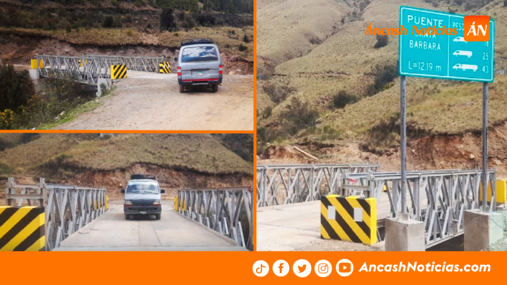 El Ministerio de Transportes y Comunicaciones (MTC), a través de Provías Nacional, finalizó la instalación del puente modular Santa Bárbara, ubicado en el kilómetro 182+200 de la ruta PE-14C, que une los distritos de San Luis y Huari, en la provincia de Carlos Fermín Fitzcarrald, región Áncash.