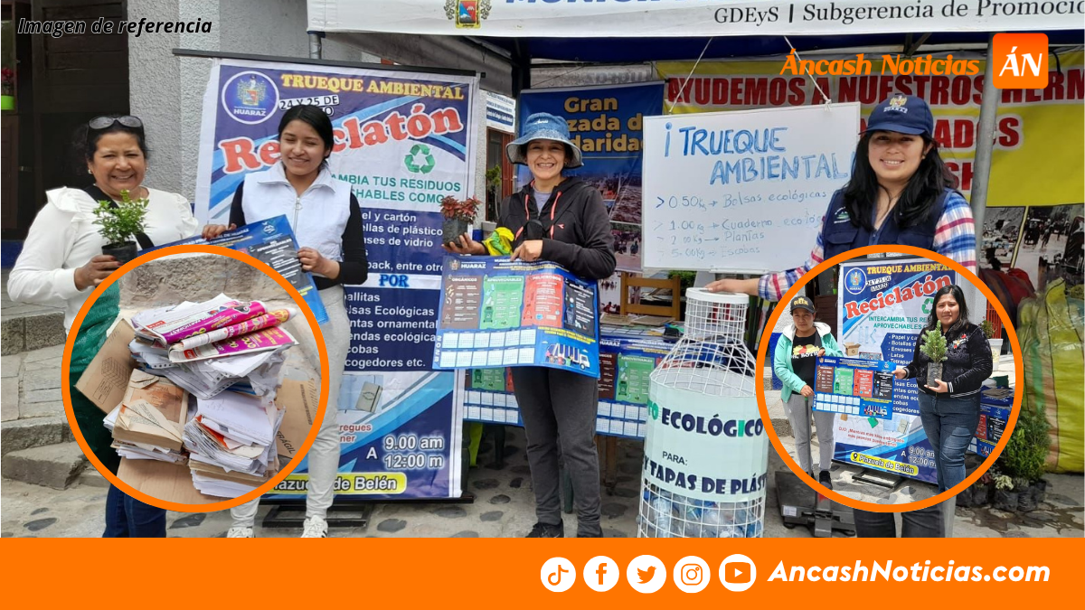 En medio de las celebraciones por el aniversario 168 de Huaraz, un grupo de ciudadanos decidió participar en una actividad distinta: canjear residuos por plantas, útiles escolares y bolsas ecológicas, como parte de la campaña “Eco Trueque: Huaraz Recicla 168 años contigo”.