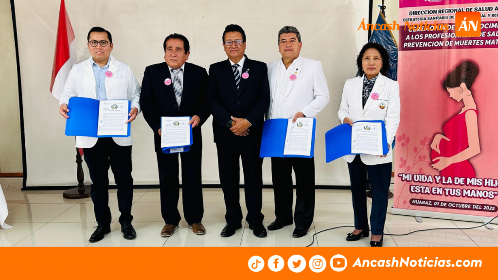 En Huaraz se llevó a cabo una ceremonia de reconocimiento para médicos, obstetras, jefes de UCI y especialistas en ginecología de hospitales clave, como el Eleazar Guzmán Barrón de Chimbote, Víctor Ramos Guardia de Huaraz y las redes de salud Pacífico Sur y Huaylas Norte.