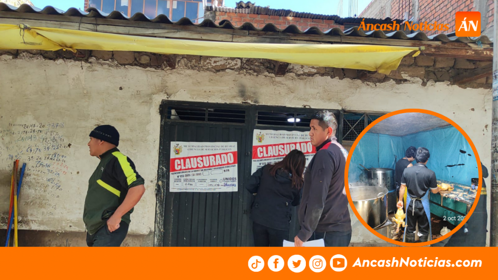 La Municipalidad Provincial de Huaraz, a través de la Subgerencia de Comercialización, clausuró una avícola tras comprobar que realizaba el sacrificio de aves sin contar con la debida autorización sanitaria. El operativo se ejecutó la madrugada del 2 de octubre con la participación de la Dirección Regional de Salud (DIRESA), el Servicio Nacional de Sanidad Agraria (SENASA), la Policía Nacional y las áreas competentes de la comuna.