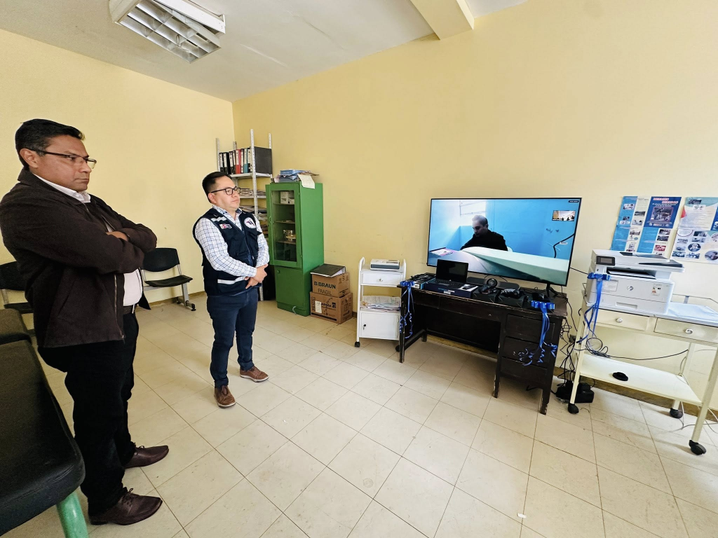 Autoridades verifican la instalación de equipos de telemedicina en el Centro de Salud San Marcos.