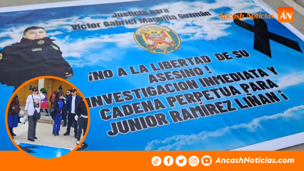 Los familiares del suboficial de la PNP, Víctor Maguiña Guzmán, quien fue hallado muerto dentro de la comisaría de Yungay, encabezaron una marcha pacífica para exigir que se ratifique la prisión preventiva dictada contra el principal investigado en el caso.