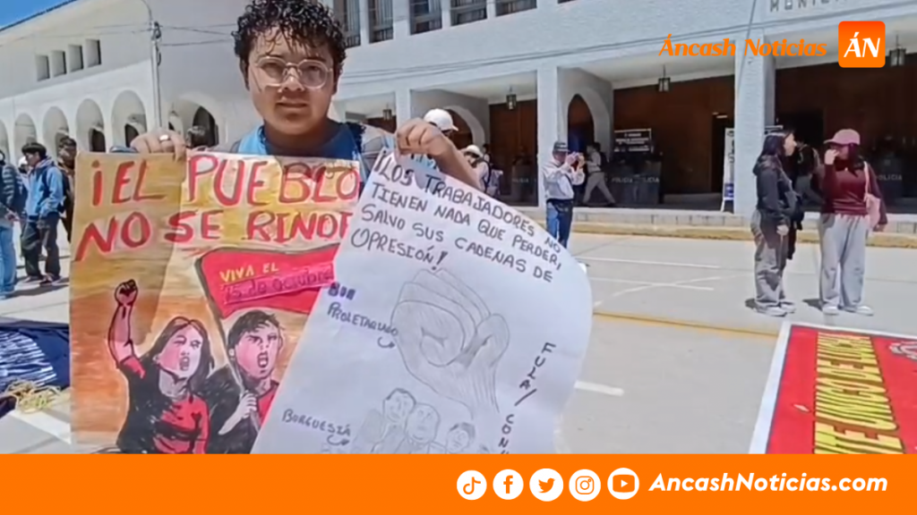 Estudiantes de la Facultad de Derecho y Ciencias Políticas de la Universidad Nacional Santiago Antúnez de Mayolo (Unasam) se congregaron en la Plaza de Armas de Huaraz para sumarse a la convocatoria nacional de la Generación Z, quienes protestan contra el gobierno del presidente José Jerí Oré, al considerarlo una continuación del modelo político previo tras la vacancia de Dina Boluarte.