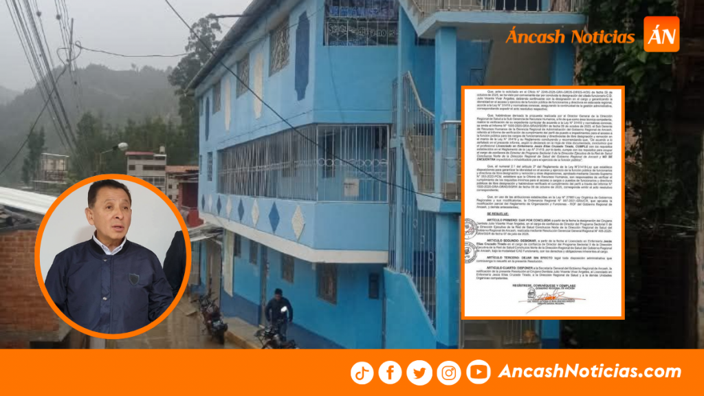 Según la Resolución Gerencial General Regional N.º 1500-2025-GRA-GGR/SGRH, se dio por concluida la designación del anterior director del Programa Sectorial II de la Dirección Ejecutiva de la Red de Salud Conchucos Norte, cargo de confianza que venía desempeñando desde julio del mismo año.