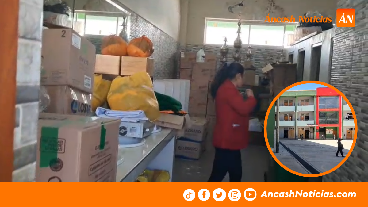 El director del colegio Simón Bolívar de Huaraz confirmó que los baños del segundo piso fueron usados como almacén desde 2022. Se hallaron mascarillas, papel higiénico y productos de limpieza que ahora serán distribuidos a los estudiantes.