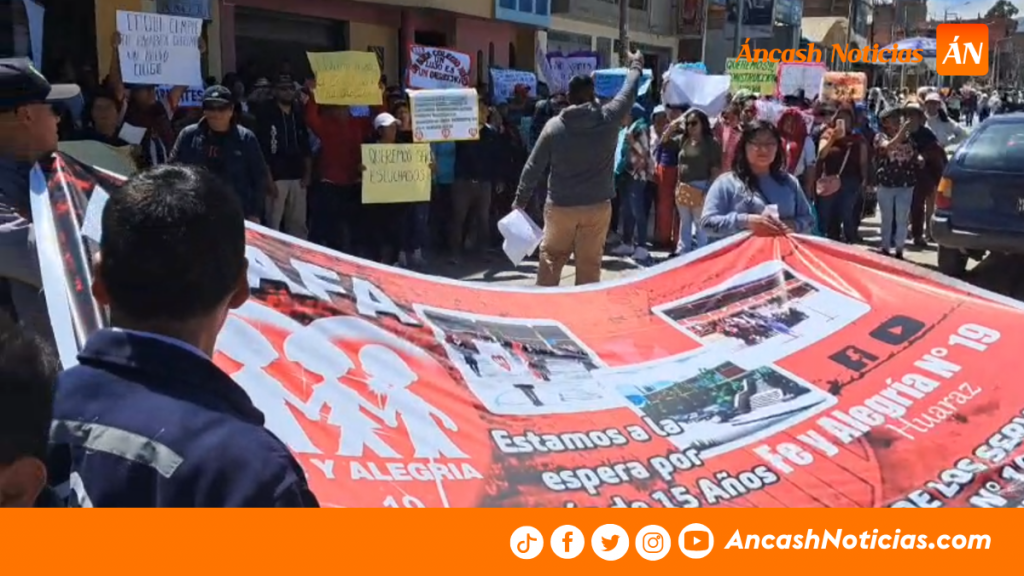 La comunidad educativa del colegio Fe y Alegría de Huaraz se movilizó hasta el frontis del Gobierno Regional de Áncash para exigir la reactivación del proyecto de construcción de su nueva infraestructura.